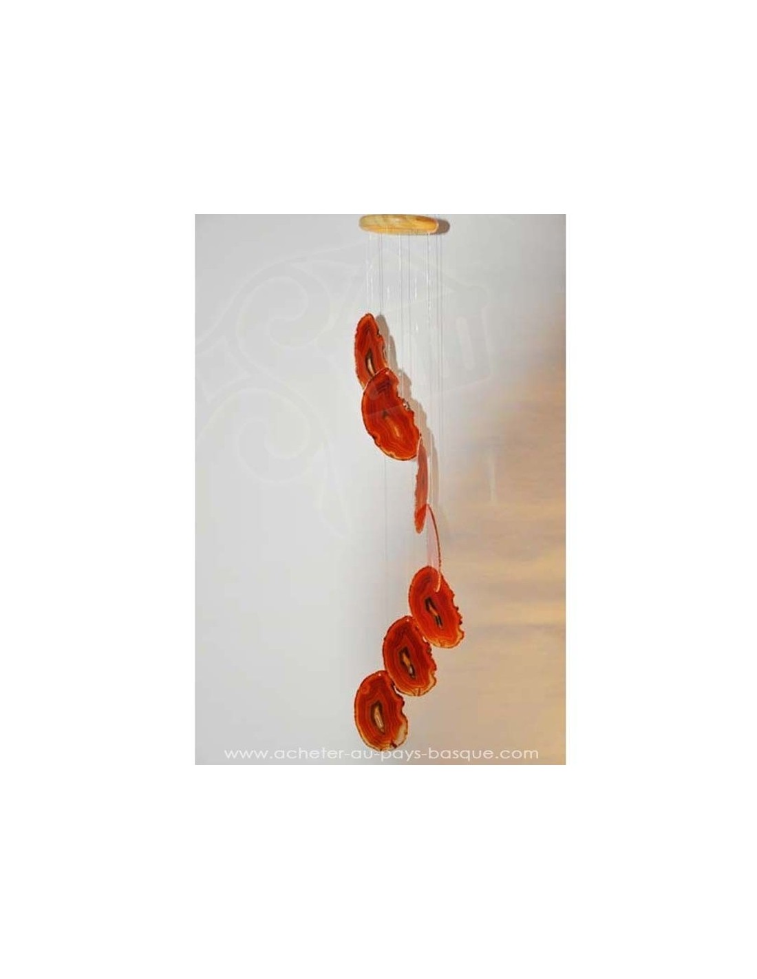 Ce carillon est formé de 7 disques d'agates de couleurs brunes, marrons et orangés.