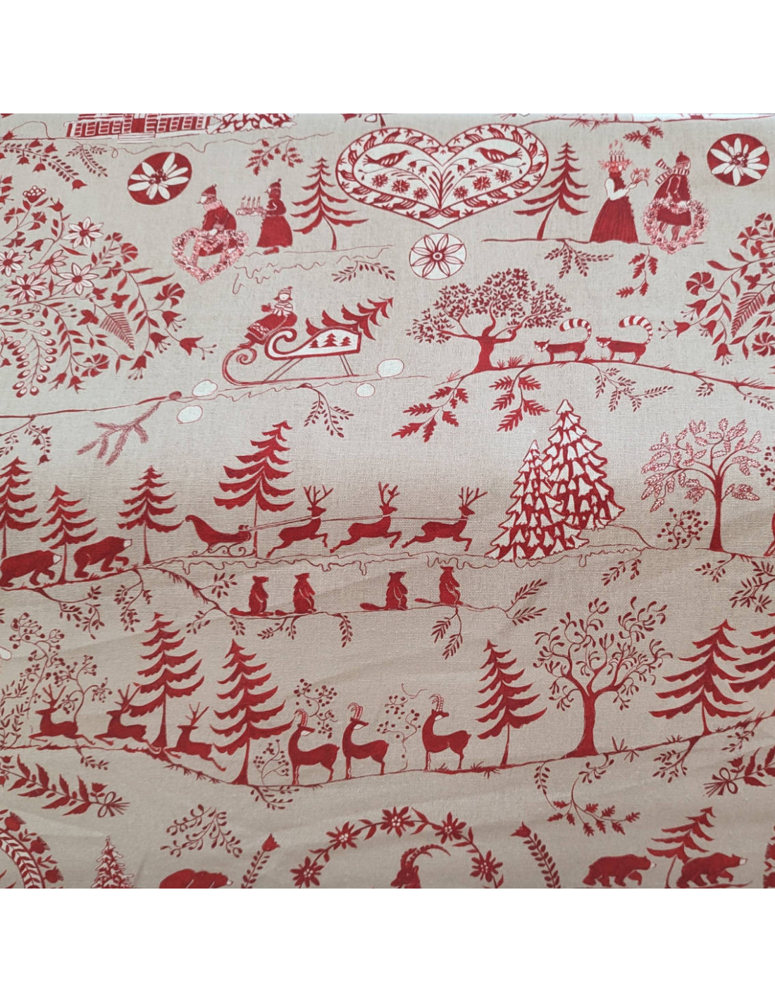 BELLEVUE Tissu toile de lin thème Noël fond crème - Thévenon