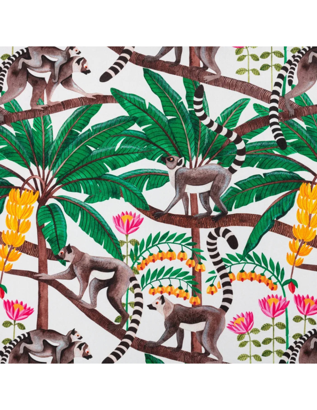 LEMURIENS toile coton animaux lémurien fond blanc - Thevenon