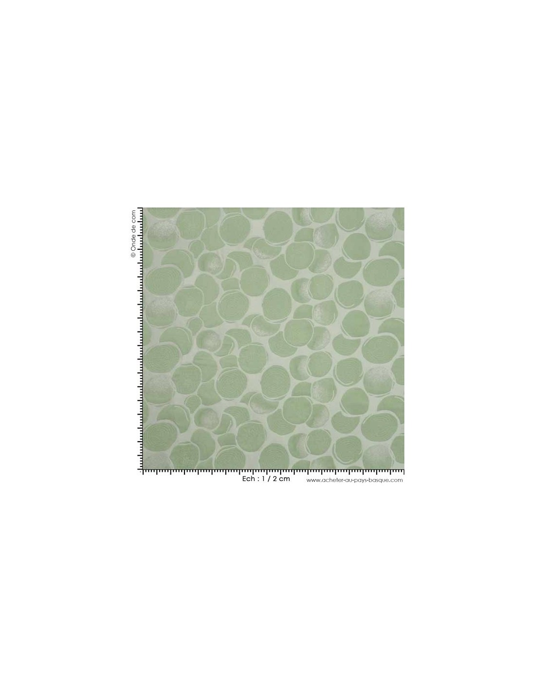 Genil est un jacquard à motifs géométriques : ronds vert amande mat sur fond vert pale satiné.