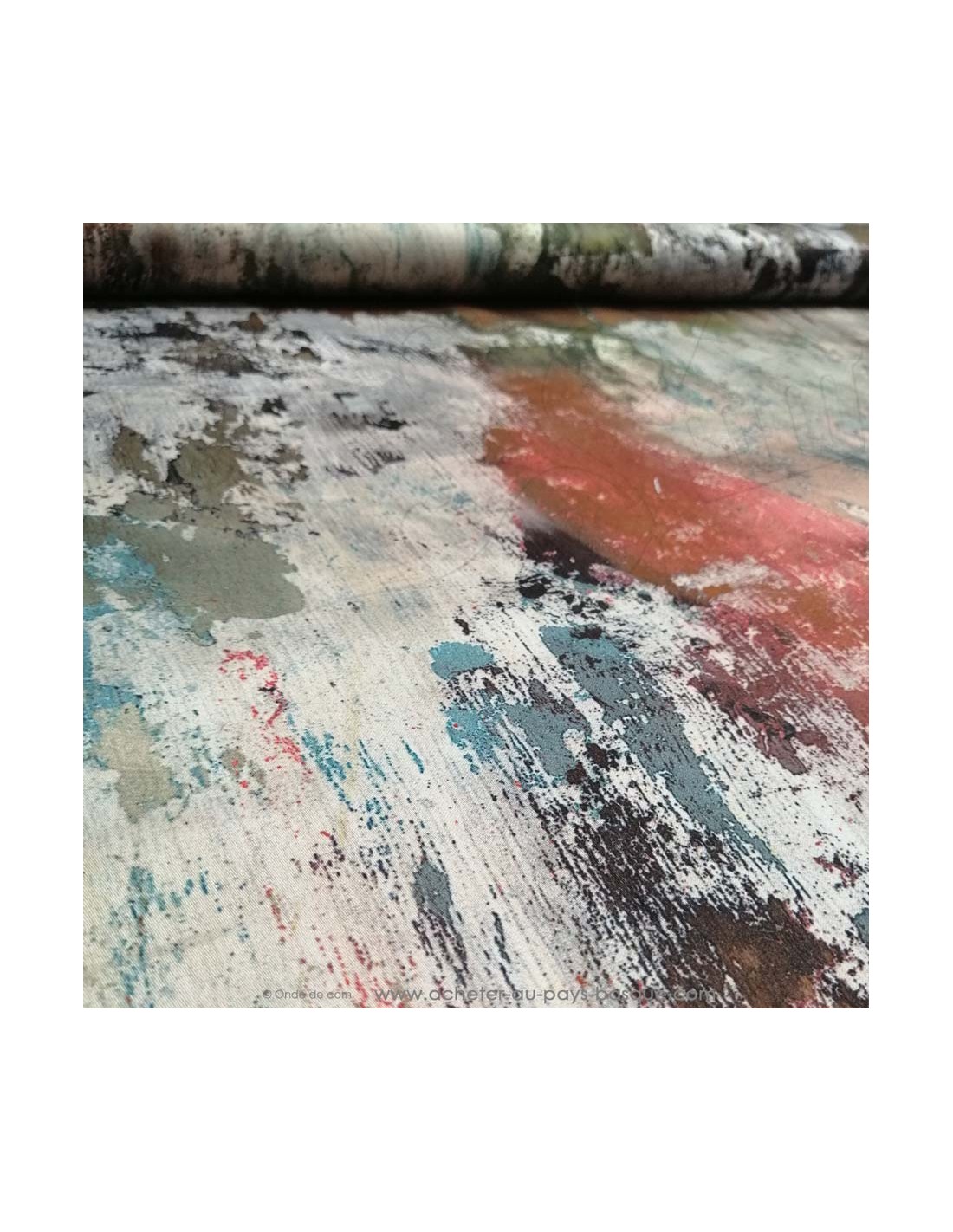 Satin de Coton léger effet peinture oxydation métal rouille gris vert
