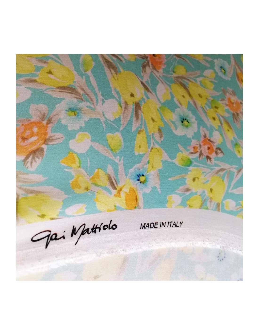 Tissu viscose italienne fleurie jaune orange turquoise - Gai Mattiolo