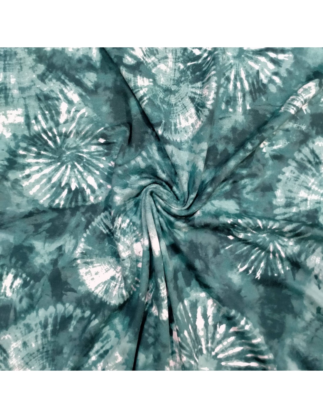 Magnifique jersey de viscose vert, plein de pep's avec ce rose tie and dye, léger et fluide idéal pour des créations type robe, top, jupes, pantalon, combinaison...