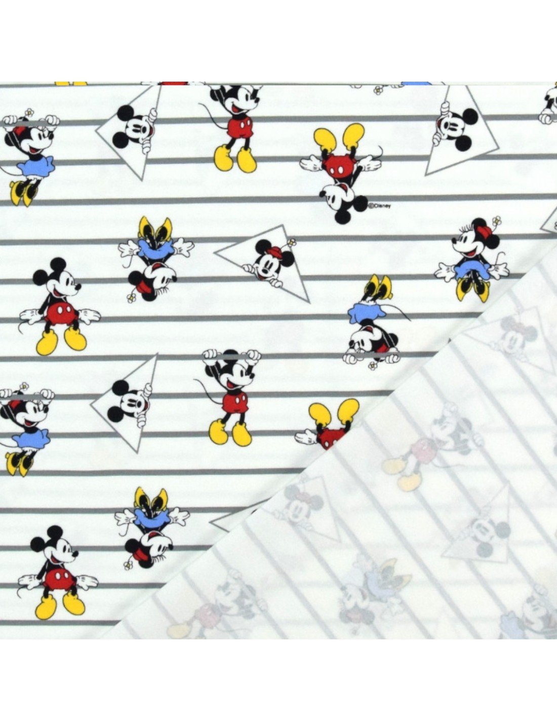 Tissu enfant Jersey coton blanc rayure Mickey et Minnie