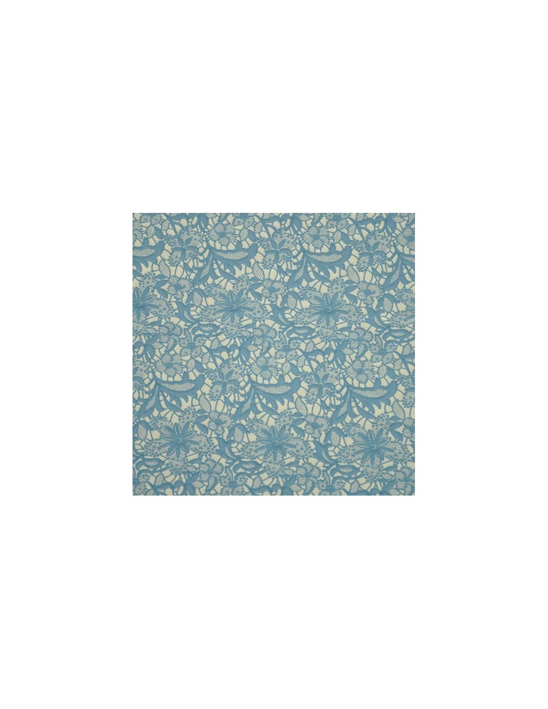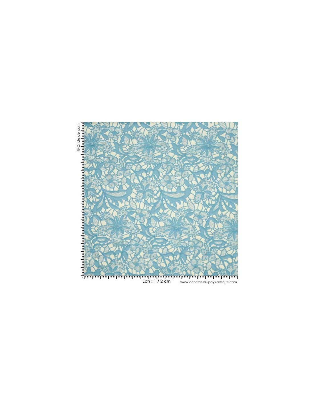 Effet guipure Bleu ciel sur fond crème pour jupe, robe ou veste.