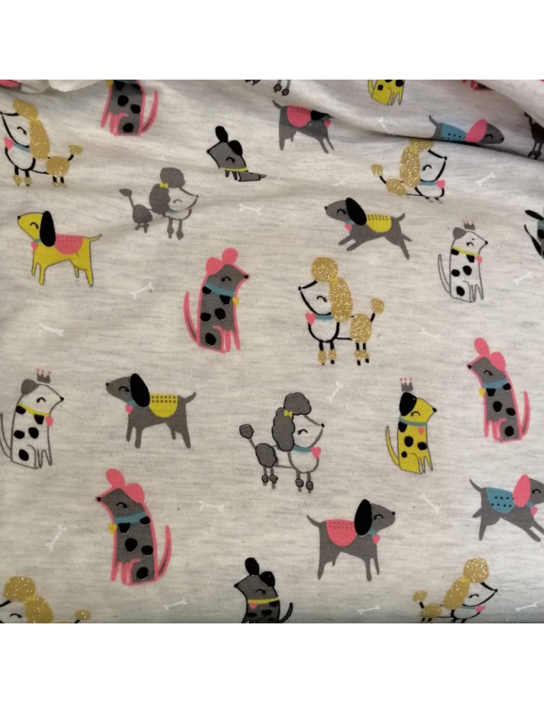 Beau tissu Jersey coton très girly avec petits chiens stylés et paillettes