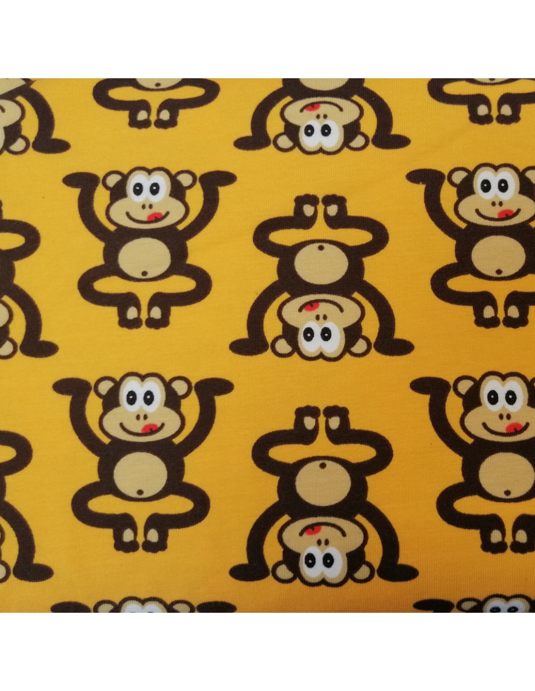 Jersey petits singes rigolos tête en haut tête en bas sur fond jaune Oeko-Tex