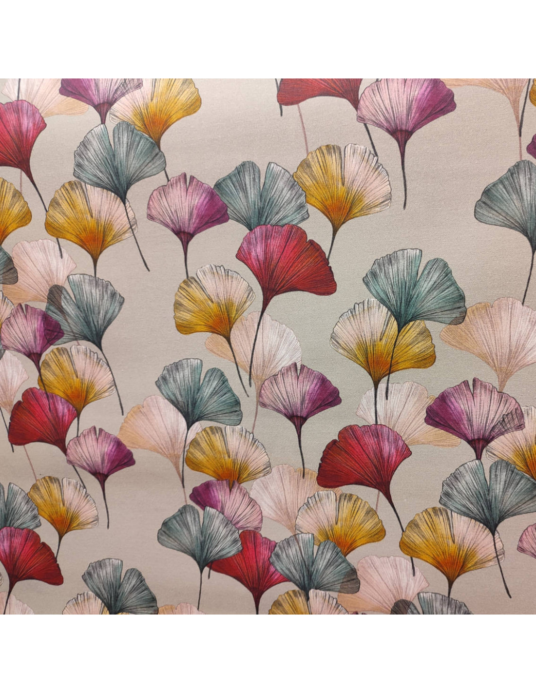 Tissu coton enduit , laize de 160 cm motif ginko biloba, nappe toile enduite, modèle Céline de la Maison Thévenon